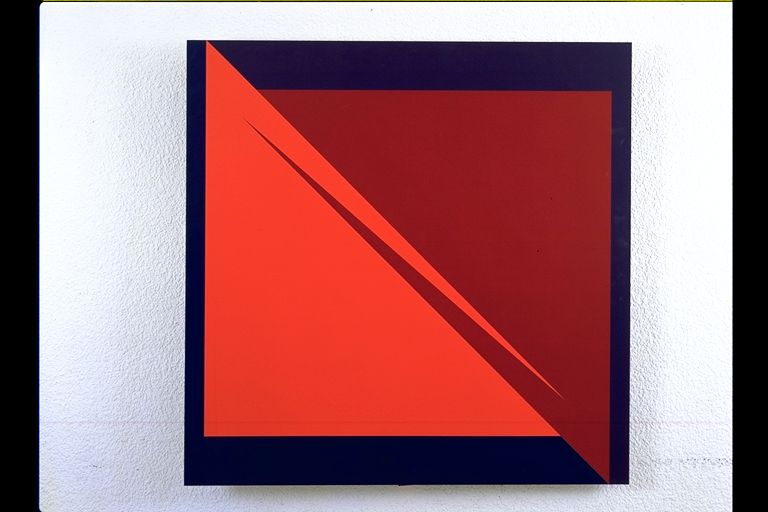 | Resumen: | Técnica: Acrílico Materia-soporte: Tabla Abstracción geométrica, sobre fondo azul dos grandes triángulos equiláteros en dos tonos rojos. |