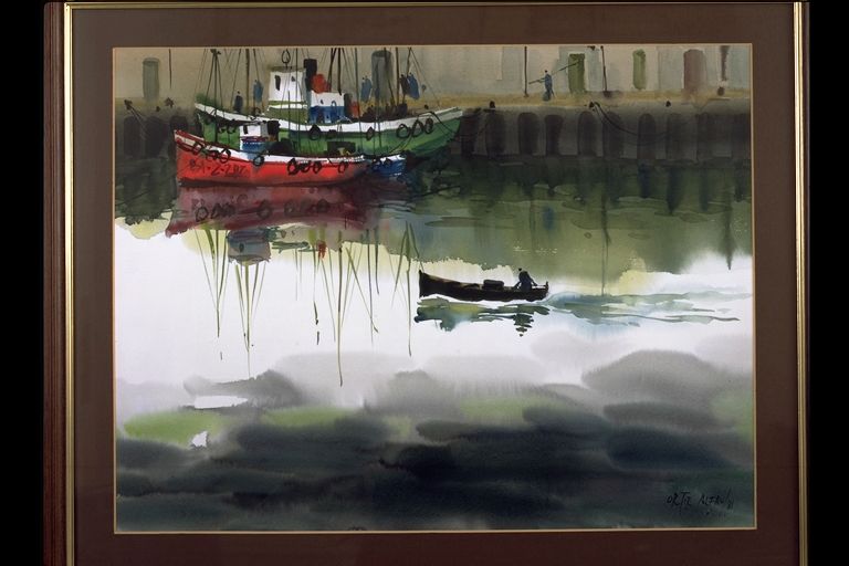 | Deskribapena: | Técnica: Acuarela Materia-soporte: Papel Paisaje marítimo, barcos amarrados y malecón del puerto. Firmado en ángulo inferior derecho. |