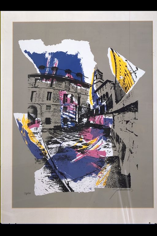 | Deskribapena: | Técnica: Serigrafía Material: Papel Composición con la Plaza de los Arquillos y San Vicente. Firmado en ángulo inferior derecho. |