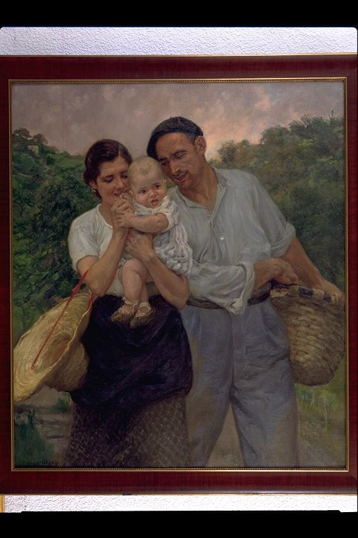 | Deskribapena: | Técnica: Óleo Materia-soporte: Lienzo Familia de campesinos formado por un joven matrimonio y su hijo pequeño en los brazos de su madre. Firmado en ángulo inferior izquierdo. |