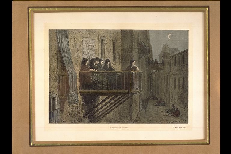 | Deskribapena: | Técnica: Xilografía-Text Materia-soporte: Papel satinado Mujeres en un balcón de la parte antigua de Vitoria. Procede del viaje a España de Duvallier. Inscripciones en la parte inferior. |