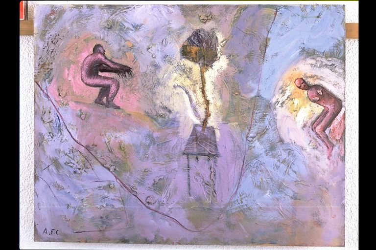 | Resumen: | Técnica: Mixta Materia-soporte: Tablex Fecha de ejecución: 1988 Obra figurativa, figuras humanas en los extremos y en el centro una casa y un árbol. Firmado en ángulo inferior izquierdo. |