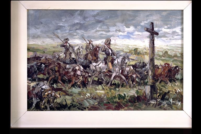 | Resumen: | Exposición Técnica: Óleo Materia-soporte: Lienzo Tres jinetes andaluces guiando el ganado, en el lateral derecho una cruz. Firmado en ángulo inferior derecho. |