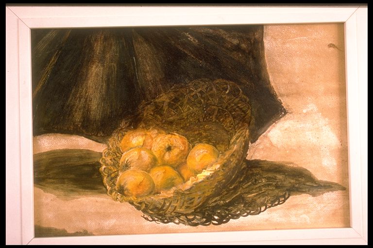 Bodegón con cesto y manzanas.