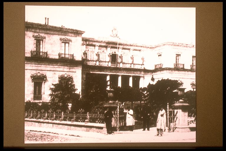 Panorámica del jardín y fachada del Palacio de la Diputación.