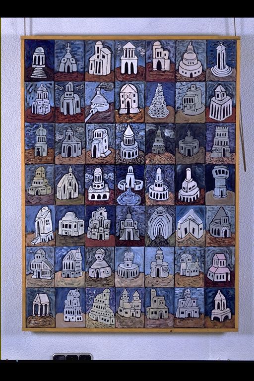 | Resumen: | Técnica: Acrílico Materia-soporte: Lienzo Obra figurativa realizada en 49 lienzos de 22X16 donde aparecen diferentes edificios arquitectónicos. |