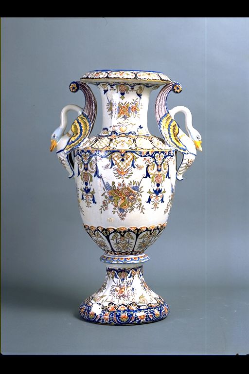 | Resumen: | Técnica: Molde Materia-soporte: Arcilla artificial Jarrón cerámico con pie y abundante decoración floral sobre fondo blanco y asas con forma de cisnes. Rotura por caída durante la obra del edificio contiguo. |