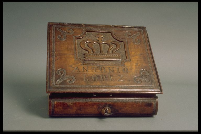 | Resumen: | Técnica: Carpintería Materia-soporte: Madera de roble Fecha de ejecución: Siglo XVIII-XIX Mueble de madera con cajonera interior y cajón base con llave. La tapa está tallada con una corona y epígrafe: Antonio López, autor. Tallado en la tapa: Antonio López. |