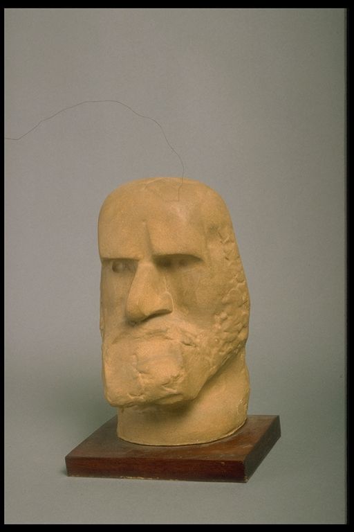 Escultura de la cabeza de Sabino Arana diseñada en 1979 por Jorge Oteiza para cubrir parte de los gastos que suponía la puesta en marcha de la Fundación Sabino Arana.