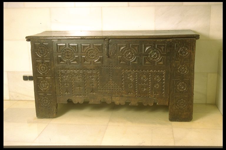 | Deskribapena: | Técnica: Ebanisteríala Materia-soporte: Madera de nogal Fecha de ejecución: Siglo XVIII Arcón de madera, típico del País Vasco con decoraciones geométricas y cruz en el centro. |