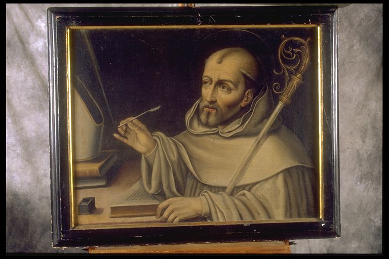 | Resumen: | Técnica: Óleo Materia-soporte: Lienzo reentelado Fecha de ejecución: Siglo XVII Monje con una pluma en la mano, báculo apoyado en el hombro y mitra, tintero y libros sobre una mesa. |