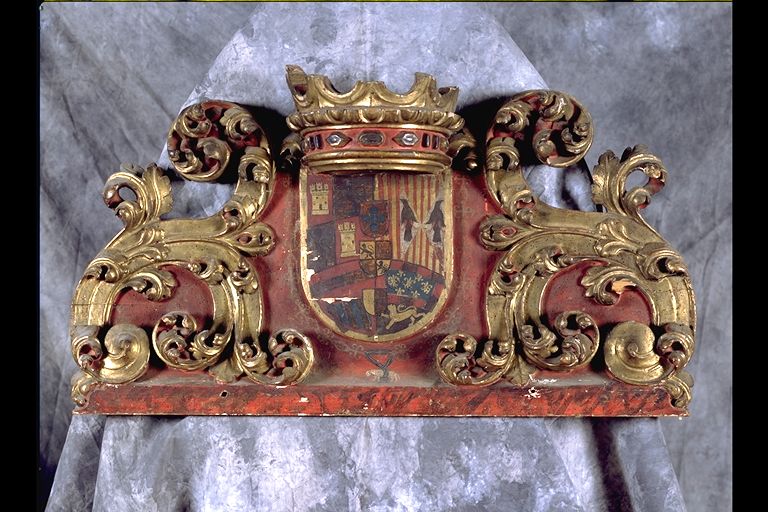 | Deskribapena: | Técnica: Talla polícroma Materia-soporte: Madera Fecha de ejecución: Siglo XVII Escudo con corona, policromía dorada y ornamentos barrocos. |