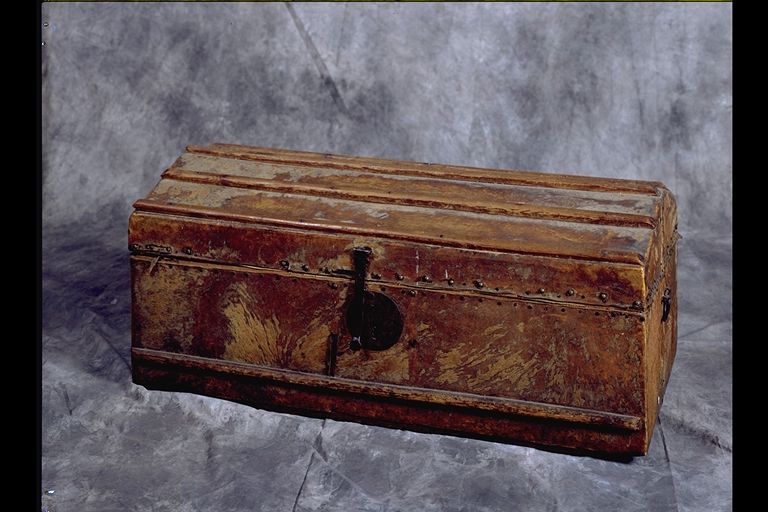 | Deskribapena: | Técnica: Carpintería Materia-soporte: Madera Fecha de ejecución: Siglo XVII-XVIII Arca baúl forrado de piel de cabra y alma de madera. |