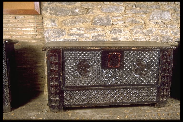 | Deskribapena: | Técnica: Ebanistería Materia-soporte: Madera de castaño-cerezo Fecha de ejecución: Siglo XVIII Arca tallada con dos cabezas en el frontis. Arca de bastidor y profusión de dibujos geométricos de recuerdo renacentista. |