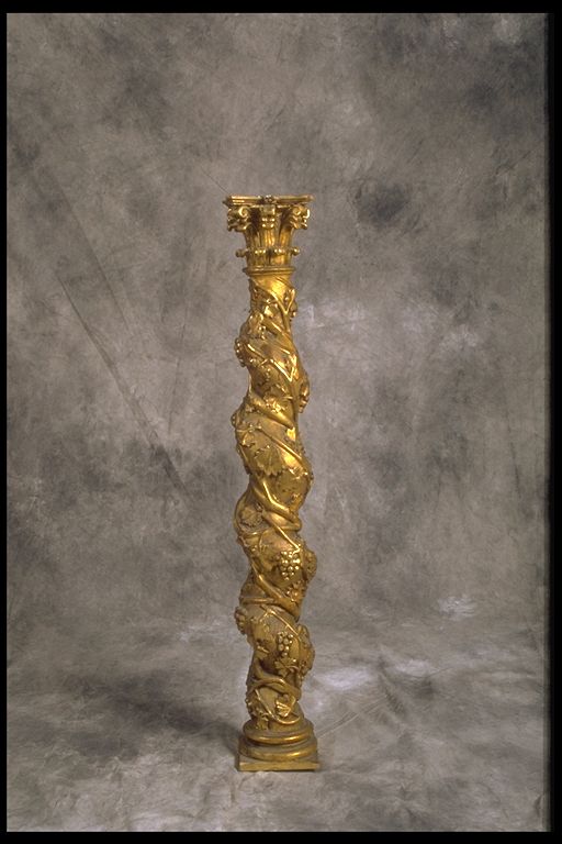 | Resumen: | Técnica: Talla polícroma Materia-soporte: Madera dorada Fecha de ejecución: Siglo XVIII tardío Columna salomónica con adornos de racimo. Pieza de retablo, talla deficiente. Falta la pareja, está desaparecida. |
