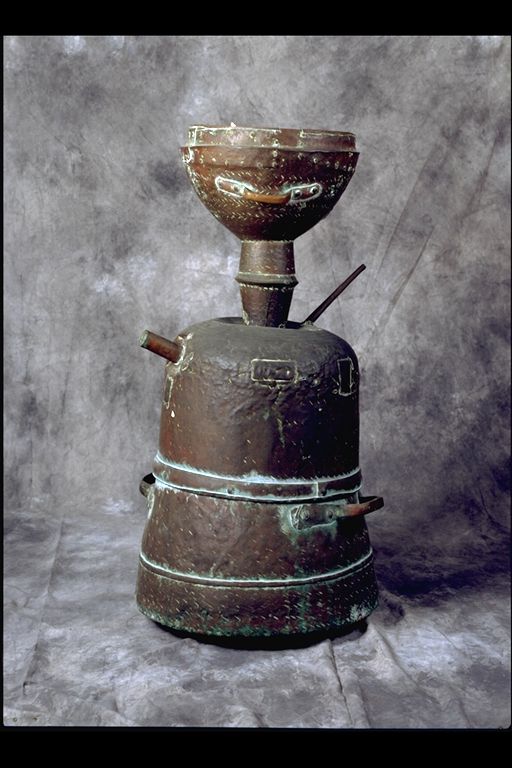 | Deskribapena: | Técnica: Cobre Materia-soporte: Cobre Fecha de ejecución: Siglo XIX Recipiente bajo con tapa y embudo, asas y salidas del vapor; trabajo popular seguramente para destilar aguardiente. |