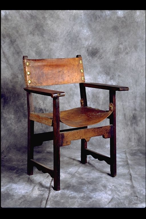 | Deskribapena: | Técnica: Ebanistería Materia-soporte: Madera de roble Fecha de ejecución: Siglo XVIII Sillón con brazos tapizado en cuero, en asiento y respaldo. Es similar al Nº 1921. |