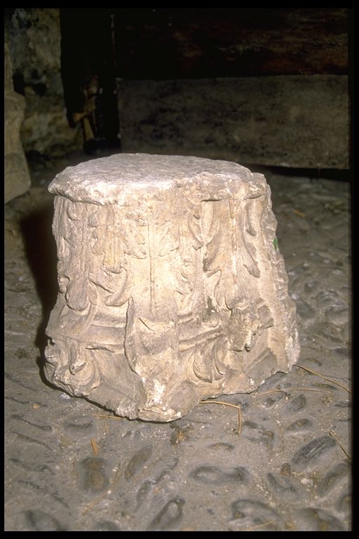 | Deskribapena: | Técnica: Escultura cantera Materia-soporte: Piedra Parte superior de columna tallada en piedra con motivos florales. |