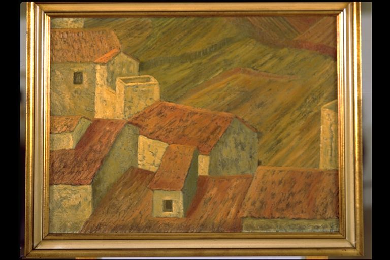 | Resumen: | Técnica: Óleo Materia-soporte: Tabla Paisaje rural, vista de los tejados de un pueblo. |