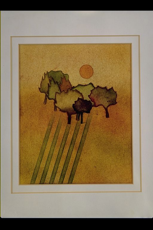 | Resumen: | Técnica: Mixta Materia-soporte: Papel Sol, árboles en grupo y largas sombras sobre fondo rojizo. |