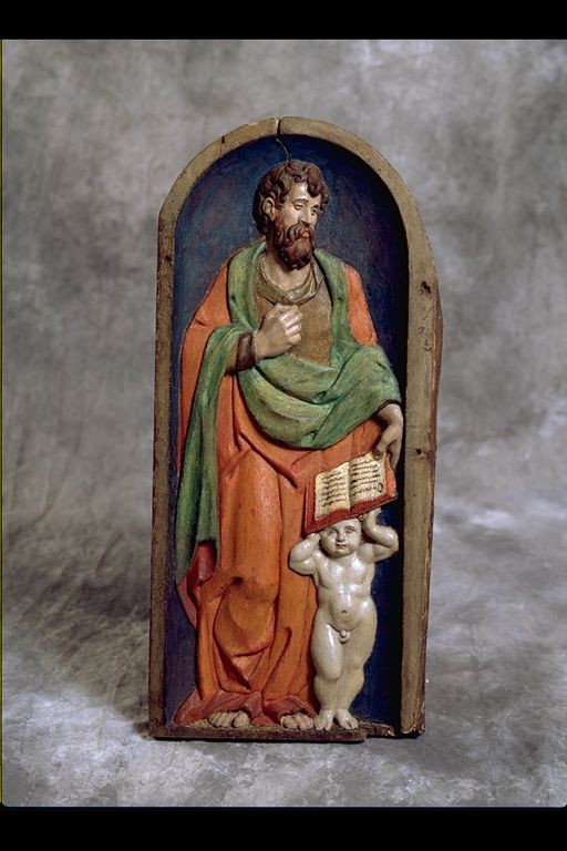 | Resumen: | Técnica: Talla polícroma Materia-soporte: Madera de castaño Fecha de ejecución: Siglo XVI-XVII Talla del evangelista con libro soportado por un niño. Perteneciente a un retablo. |