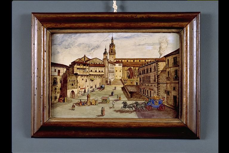 | Resumen: | Técnica: Cerámica-Esmalte Materia-soporte: Cerámica Cerámica esmaltada y enmarcada con vista de la plaza Virgen Blanca antigua con una diligencia. Expurgado Nota: la pieza ya no pertenece al Patrimonio de la Fundación Vital. |
