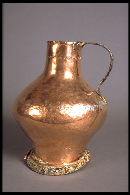 | Deskribapena: | Técnica: Fundición Materia-soporte: Cobre Fecha de ejecución: Siglo XIX Recipiente de cobre forjado. Jarro con asa en cobre. Trabajo popular. Expurgado Nota: la pieza ya no pertenece al Patrimonio de la Fundación Vital. |