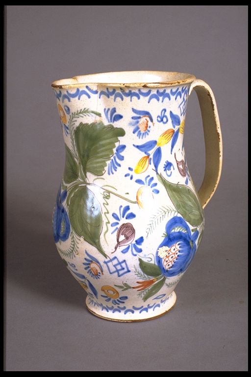 Jarra decorada con grandes flores azules.