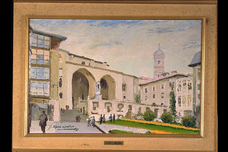 | Deskribapena: | Exposición Técnica: Óleo Materia-soporte: Tablex Fecha de ejecución: 1987 Vista de la Plaza de la Virgen Blanca con el Pórtico de San Miguel. Firmado y fechado en ángulo inferior izquierdo. |