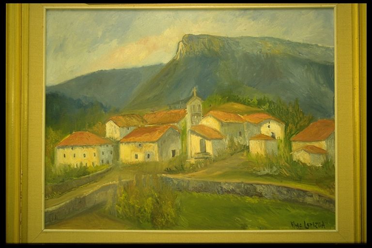 | Deskribapena: | Técnica: Óleo Materia-soporte: Lienzo Paisaje con pueblo al fondo. Firmado en ángulo inferior derecho. |