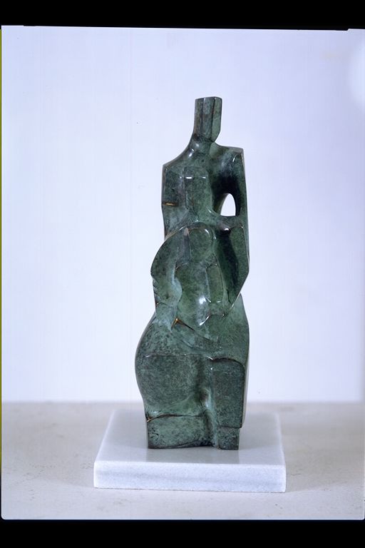| Deskribapena: | Técnica: Bronce Técnica: Bronce Fecha de ejecución: 1975 Conjunto de tres personas esquematizadas, una central, sentada con niño en brazos y otro de pie detrás. Marcado en la base. |