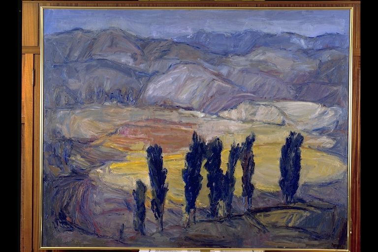| Deskribapena: | Exposición Técnica: Óleo Materia-soporte: Lienzo Paisaje con árboles, en primer término valle central y montes al fondo. Firmado en ángulo inferior derecho. |