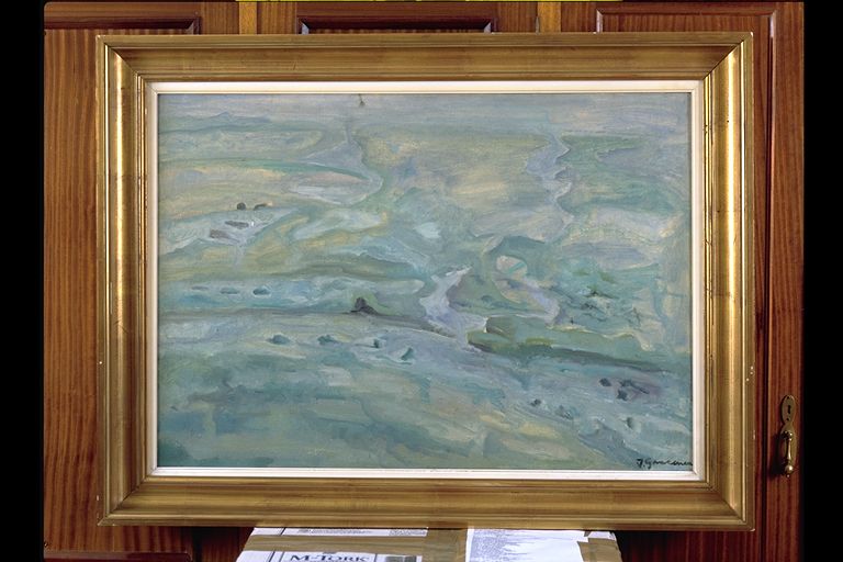 | Deskribapena: | Certamen Anual Plástica Técnica: Óleo Materia-soporte: Lienzo Fecha de ejecución: 1970 Por el título se deduce que la pintura representa los charcos y meandros que se forman en la playa con el agua del mar. Prestando atención al cuadro nos acerca a la realidad interpretada con un sentido totalmente abstracto y de carácter gestual. Firmado en ángulo inferior derecho. |