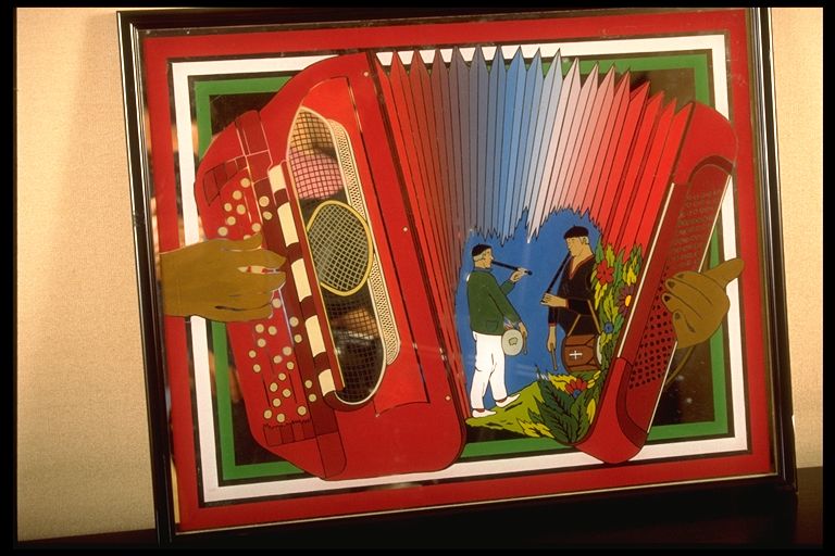 | Resumen: | Exposición Técnica: Laca Materia-soporte: Cristal Sobre un acordeón, figura de dos txistularis. |
