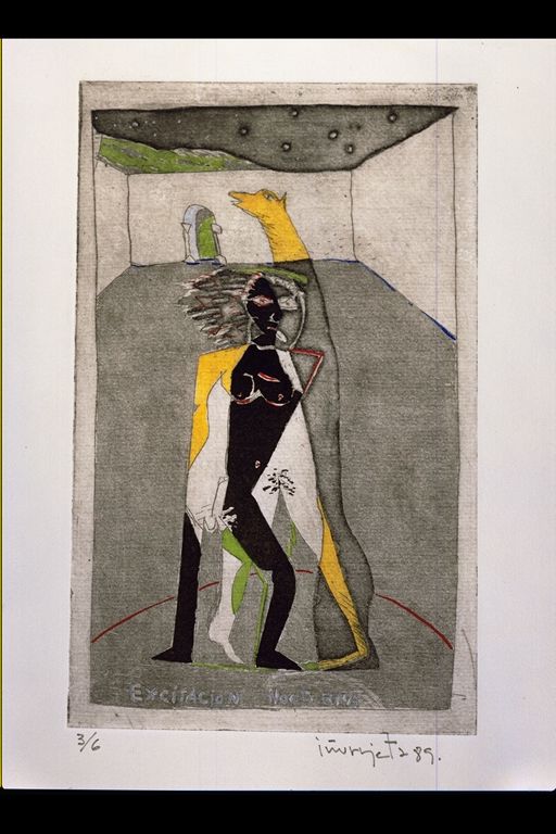 | Deskribapena: | Técnica: Grabado Materia-soporte: Papel Fecha de ejecución: 1989 Personaje con animal. Firmado y numerado en la parte inferior. |