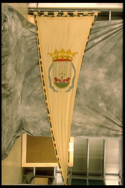 | Deskribapena: | Técnica: Tapiz Materia-soporte: Fieltro Fecha de ejecución: Siglo XX Tapiz pendón triangular. |