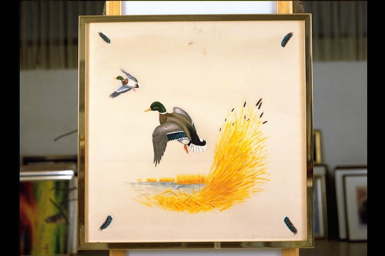 | Deskribapena: | Exposición Técnica: Tintas Materia-soporte: Seda Ánades reales en vuelo. Firmado en ángulo inferior izquierdo. |