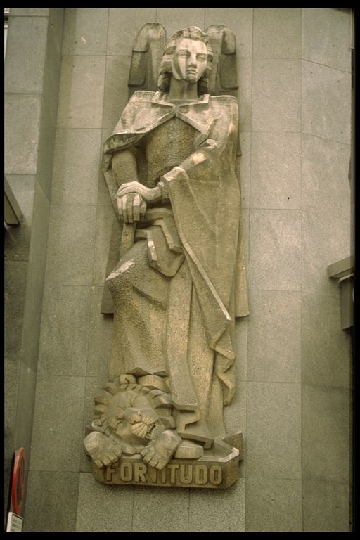 | Deskribapena: | Técnica: Escultura Materia-soporte: Piedra Alegoría de la Fortaleza. Figura alada cuyo pie posa sobre la cabeza de un león. |
