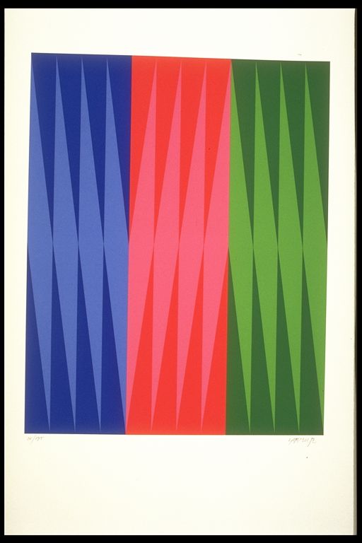 | Resumen: | Técnica: Serigrafía Materia-soporte: Papel Dibujo geométrico en tres colores básicos. Firmado y numerado en ángulos inferiores. |