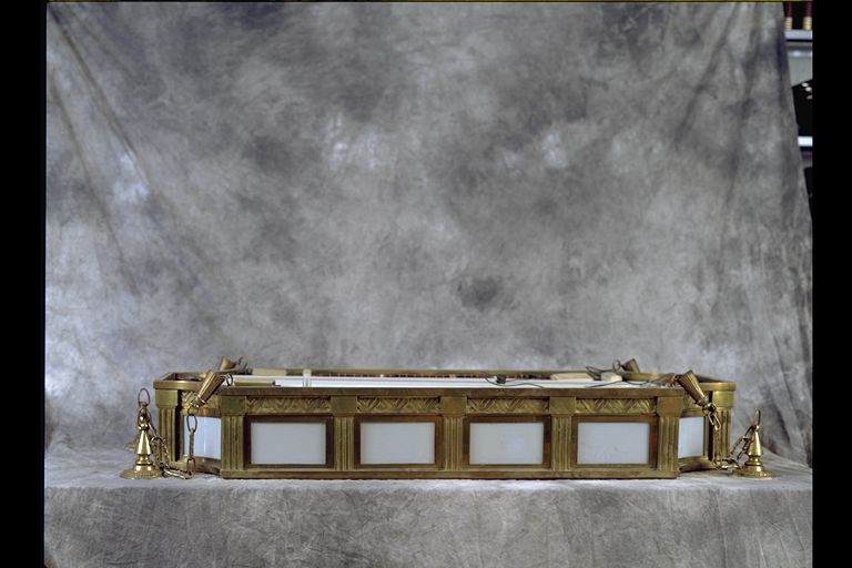 | Resumen: | Técnica: Mixta Materia-soporte: Latón-Cristal Fecha de ejecución: 1950 Lámpara electrificada de forma rectangular y cuatro soportes para colgar del techo en bronce oxidado. Vidrieras emplomadas. |