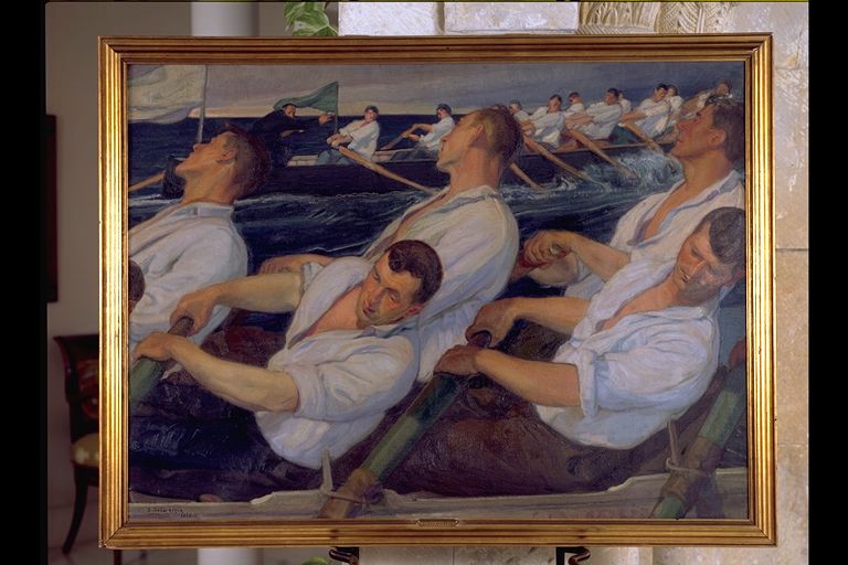| Deskribapena: | Técnica: Óleo Materia-soporte: Lienzo Fecha de ejecución: 1930 Remeros bogando en competición con otra trainera. Firmado y fechado en ángulo inferior izquierdo. |