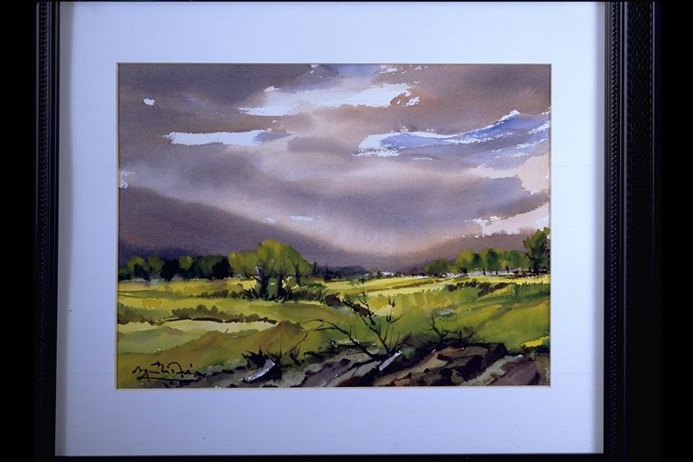 | Deskribapena: | Exposición Técnica: Acuarela Materia-soporte: Papel Paisaje de campo verde y gran cielo. Firmado en ángulo inferior izquierdo. |
