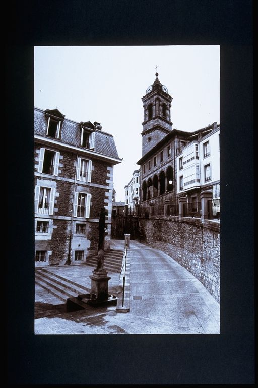 | Deskribapena: | Certamen Técnica: Fotografía bl. y n. Materia-soporte: Papel Lema: las cuatro torres. Típico rincón vitoriano donde se funde el paseo de Los Arquillos y la Plaza del Machete con la cuesta de San Vicente. |