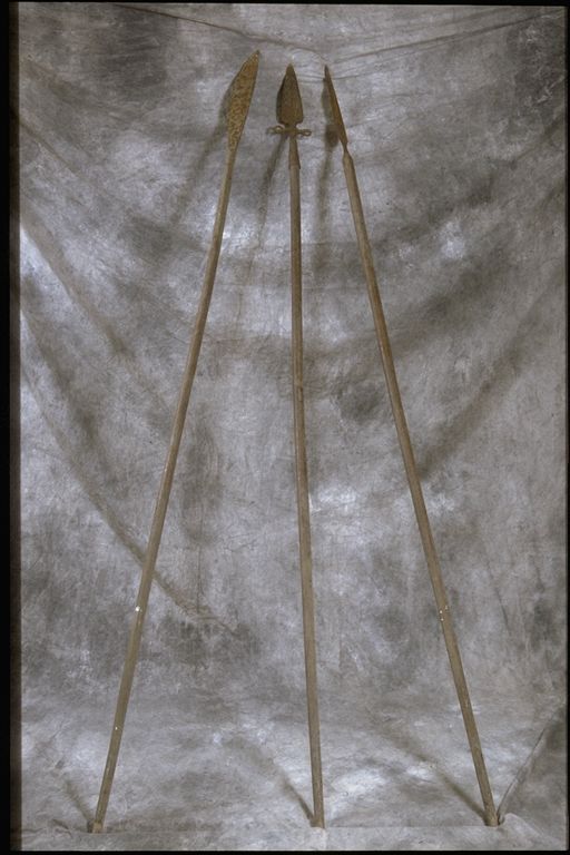 | Deskribapena: | Técnica: Hierro Materia-soporte: Hierro Tres lanzas de hierro: lanza con tope, limpia y cuchillo. |