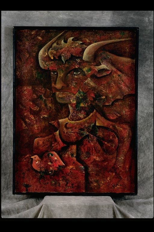| Deskribapena: | Exposición Técnica: Óleo Materia-soporte: Lienzo Personaje con cuernos que porta una paloma. Firmado en ángulo inferior derecho. |
