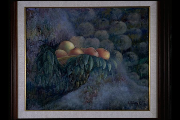 | Deskribapena: | Exposición Técnica: Óleo Materia-soporte: Lienzo Fecha de ejecución: 1990 Bodegón de frutas y hojas, cesta de manzanas con hojas al lado izquierdo y manzanas flotando al fondo. Firmado en ángulo inferior derecho. |
