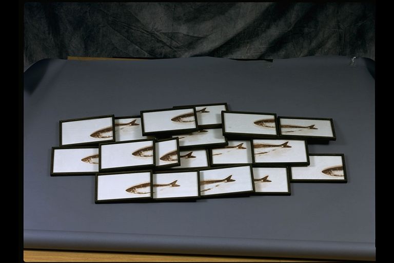 | Description: | Certamen Arte Plástico Contemporáneo Técnica: Fotografías. Copias Materia-soporte: Papel sepia Fecha de ejecución: 1995 Utilizando dos módulos, uno en el que representa la cabeza y el otro en el que se representa el cuerpo y la cola de un pez, ambos realizados en fotografía. La artista ha construido, con el juego multiple de ambos elementos, enmarcados y repetidos, una escultura que posada sobre el suelo sugiere la existencia de un banco de peces en el mar, a pesar de que los elementos modulares carezcan de continuidad. La escultura podrá observarse de diferentes maneras según la disposición de los módulos, pero la interpretación será siempre la misma. Firmado en la parte trasera. |