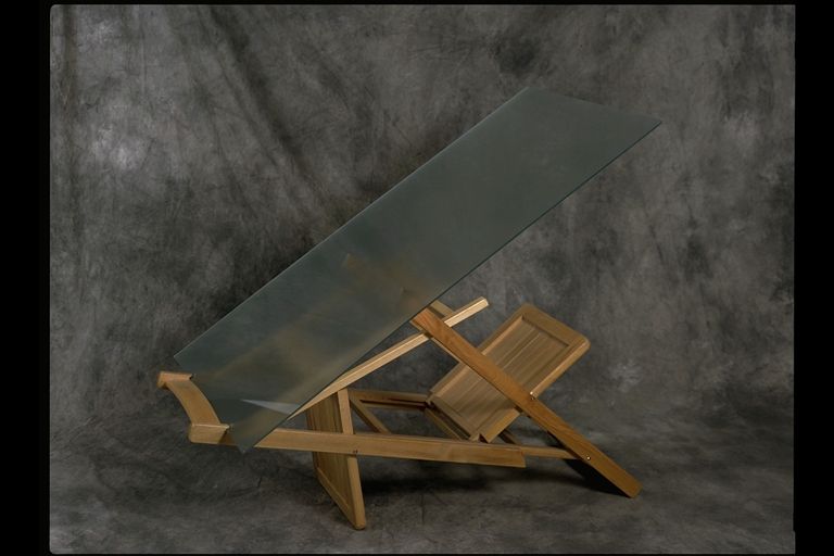 | Deskribapena: | Certamen Arte Plástico Contemporáneo Técnica: Ensamblaje Materia-soporte: Madera-Cristal Fecha de ejecución: 1995 El uso conjunto del cristal y la madera como materiales constructivos se empezó a utilizar en arquitectura a finales del siglo XIX. Esta composición escultórica, parte de ideas arquitectónicas para construir un entramado en el que se conjugan ambos elementos. La silla, objeto cotidiano soporta al cristal y construye formas espaciales incidentes en líneas y planos, que contemplamos desde diversas posiciones, ofrecen diferentes perspectivas estéticas versátiles y estéticamente diferentes dentro de su inestabilidad y fragilidad. |
