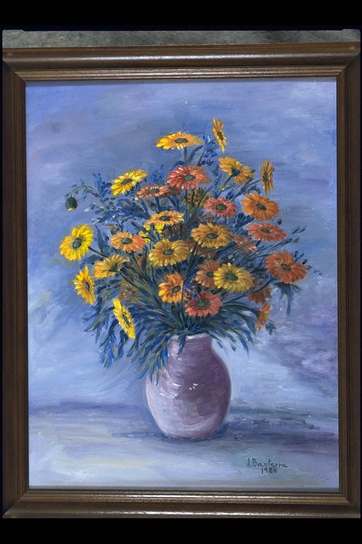 | Resumen: | Técnica: Óleo Materia-soporte: Lienzo Fecha de ejecución: 1984 Jarrón morado con ramo de margaritas amarillas y rosas. Firmado y fechado en ángulos inferiores. |