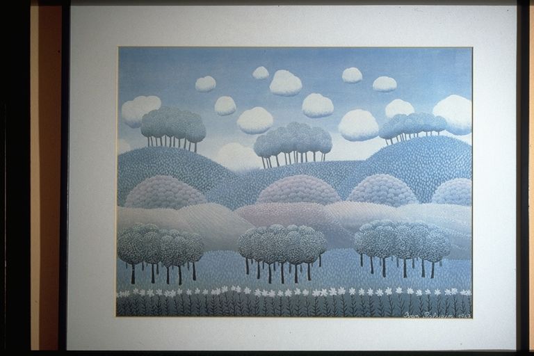 | Deskribapena: | Técnica: Litografía Materia-soporte: Papel Fecha de ejecución: 1967 Distintos terrenos en forma abultada en el que emergen grupos de árboles que por su tonalidad parecen florecer. En la parte superior, gran cielo con cúmulos nubosos. Firmado en ángulo inferior derecho. |